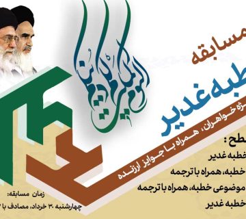 مسابقه خطبه غدیر (زمان برگزاری و ثبت نام)YaAliژوئن 2, 2024•═•••◈﷽◈•••═• الْحَمْدُ لِلَّهِ الَّذِی جَعَلَنَا مِنَ الْمُتَمَسِّکِینَ بِوِلاَیَةِ أَمِیرِالْمُؤْمِنِینَ وَ الْأَئِمَّةِ المَعصُومين عَلَیْهِمُ السَّلاَمُ هیئت صاحب الزمان (عج) و موسسه ... ادامه مطلب