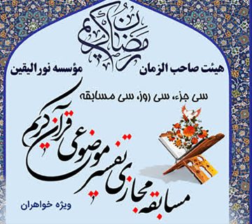 مسابقه مجازی تفسیر موضوعی قرآن کریم با محوریت تفسیر المیزان، نمونه و نور و تدریس استاد حسینی آل مرتضیYaAliمارس 18, 2024هیئت صاحب الزمان (عج) و موسسه نورالیقین همزمان با آغاز ماه مبارک رمضان برگزار می نماید: مسابقه مجازی تفسیر موضوعی ... ادامه مطلب