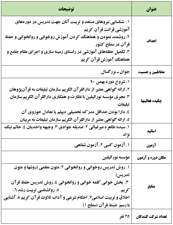 آموزش دوره تریبت معلم روانخوانی قرآن کریم ــ موسسه نورالیقین ـ سال 1390