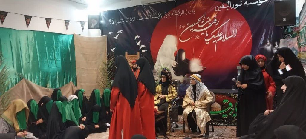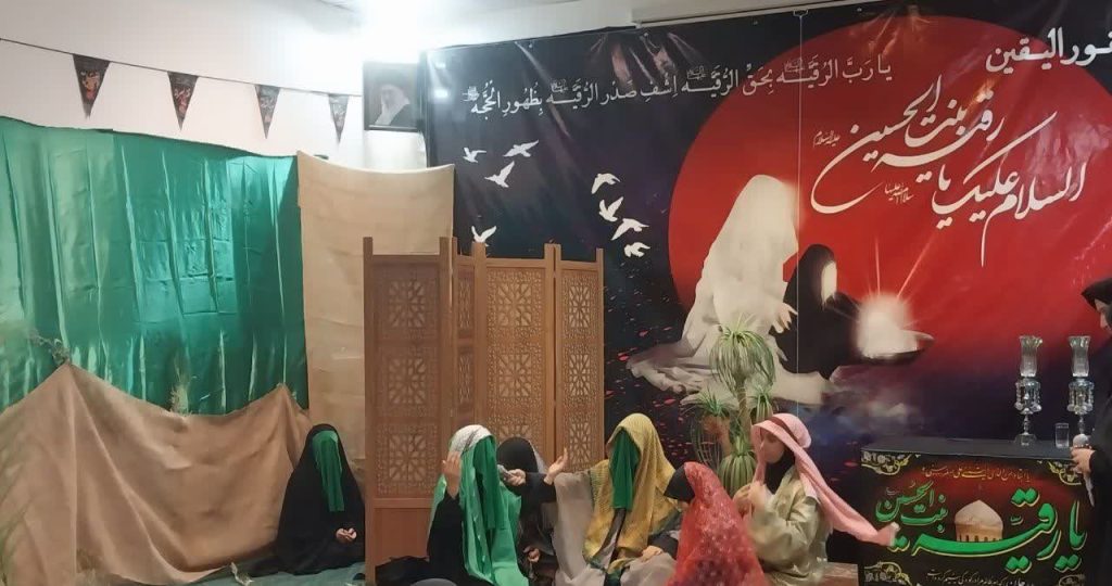 در بخشی از این مراسم نمایش سوزناک «حضور اسراى اهل بیت‌(علیهم‌السلام) در خرابه‌های شام و ورود هنده به خرابه»، توسط گروه نمایش دختران فاطمی موسسه و با حضور بیش از دویست نفر از بانوان ولایی اجرا شد که بر ایجاد فضای معنوی مراسم بسیار تاثیرگذار بود.